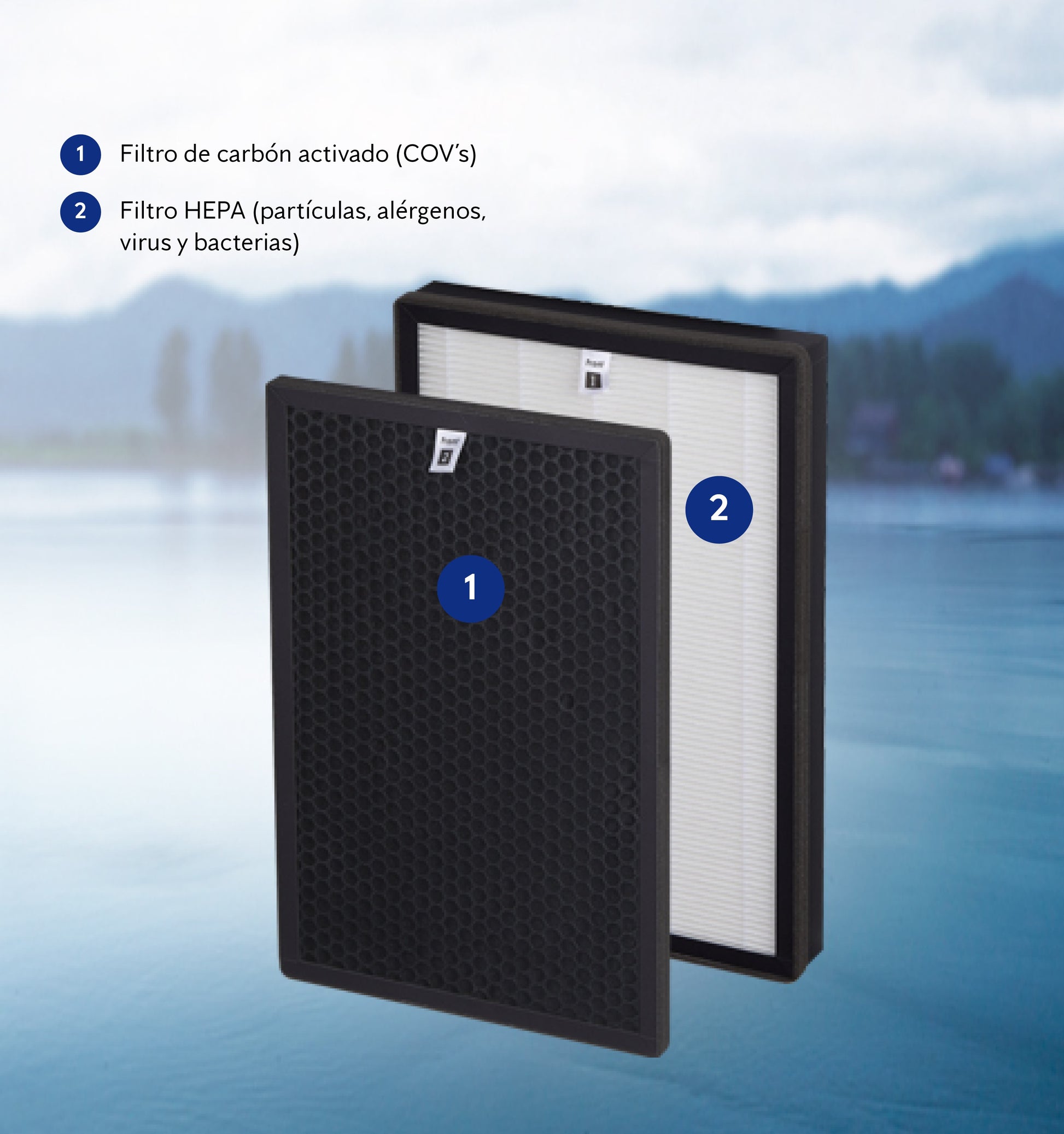 Filtro HEPA: Diseñado para capturar partículas finas como alérgenos, polvo, virus y bacterias, el filtro HEPA garantiza un aire más puro y seguro en tu hogar.